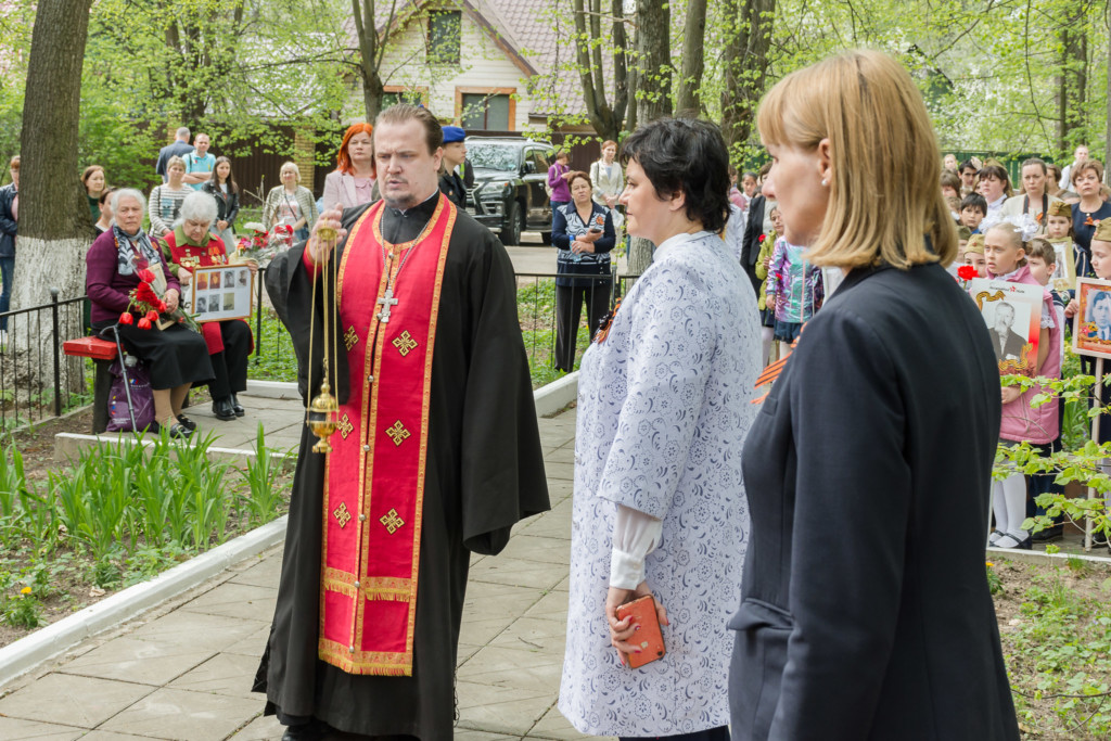 Затем учащиеся проследовали к братской могиле уроженцев поселка, погибших в сражениях Великой Отечественной войны. Настоятель Богоявленского храма села Жаворонки священник Анатолий Савченков совершил заупокойную литию.